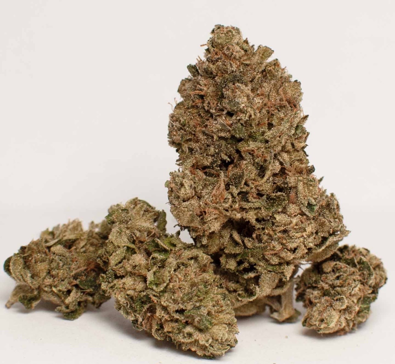 Nuken is an indica dominant hybrid (80% indica/20% sativa) strain created as cross between the cult favorite God Bud X Kish strains. This potent bud boasts a moderate THC level between 13-25% and has a deliciously enticing aroma and flavor. The aroma of Nuken is that of a sweet marshmallow with a hint of sharp skunk, and the taste is much like a freshly baked marshmallow pie with a hint of skunk upon exhale. Nuken buds have large dense and furry light minty green nugs with a thick layer of dark olive green leaves and sparse fiery orange hairs. Each nug has a fine layer of translucent crystal trichomes and is dripping with sweet sticky visible resin. The Nuken high is characterized by a long-lasting and relaxing buzz that doesn’t leave you sedated and isn’t narcotic in nature. You’ll be hit with a body buzz that starts in your spine and slowly spreads throughout your body, ridding you of any pain. This is accompanied by a deep introspection that can leave you distant and spacey at times. Because of these potent effects, Nuken is said to be perfect for treating conditions such as chronic pain, mild cases of depression, and chronic stress or anxiety.